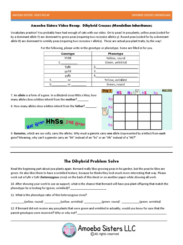 Video Recap Of Dihybrid Cross By Amoeba Sisters Pdf