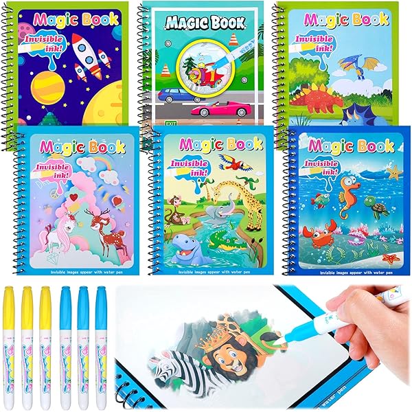 Amazon Com Water Coloring Book Portable Magic Water Coloring Drawing Book Drawing Painting Toy Travel Kits With Water Pens For Kids Animal Toys Games